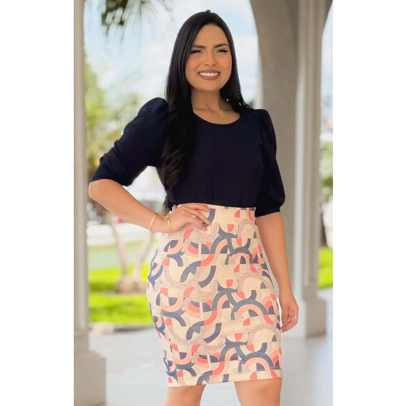 Saia Telma Em Malha Montaria Sem Zíper Estampada Maria Amore
