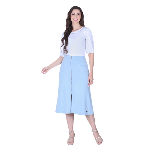 Saia Sheron Em Tecido Plano Laise Azul Céu Hapuk