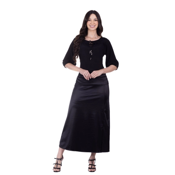 Saia Valentina Em Tecido Acetinado Preto Hapuk