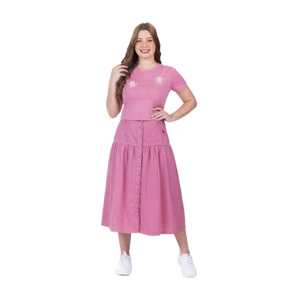 Saia Yasmine Em Jeans Rosa Hapuk