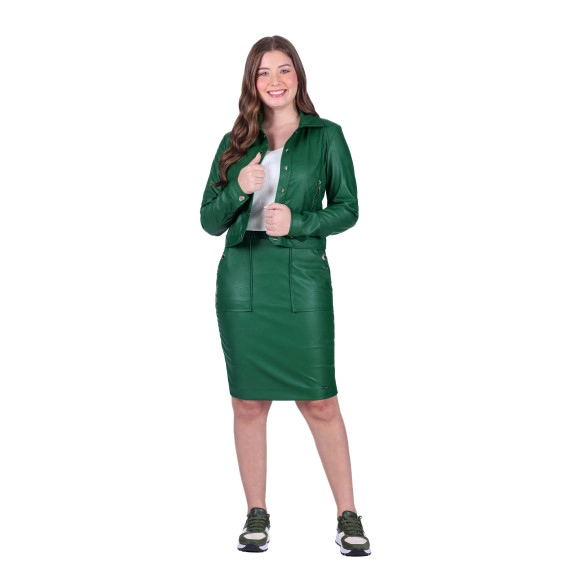 Saia Zoe Emaspecto em Couro Verde Hapuk