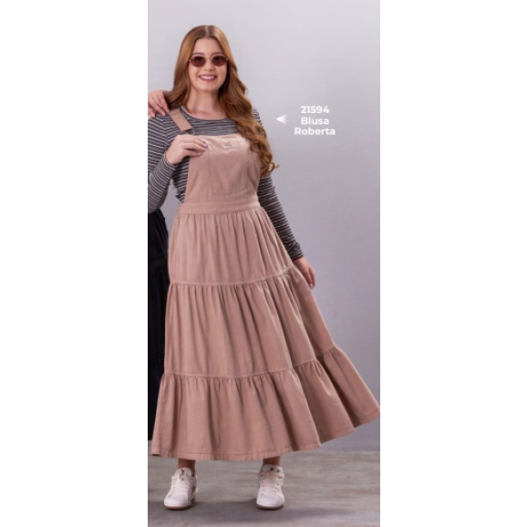 Salopete Aurora Em Jeans Color Bege Hapuk