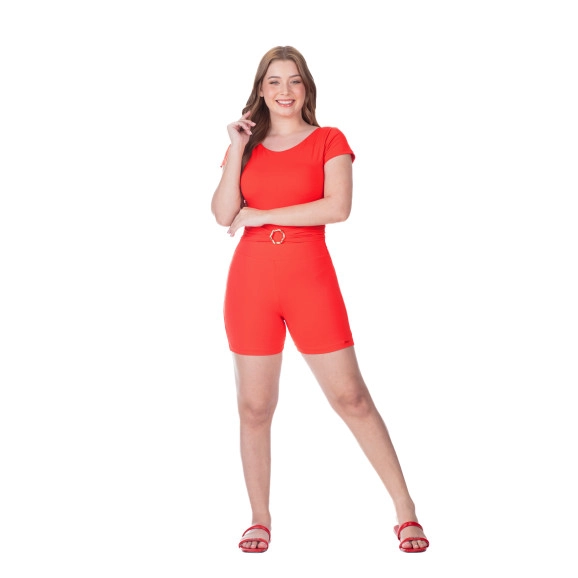 Shorts Camila Em Malha Proteção UV Laranja Hapuk
