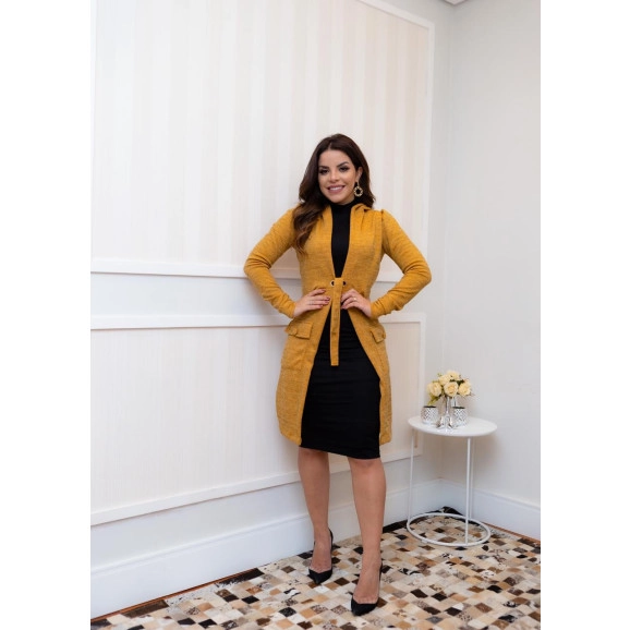 Sobretudo em Malha Tricot Mostarda Boutique K
