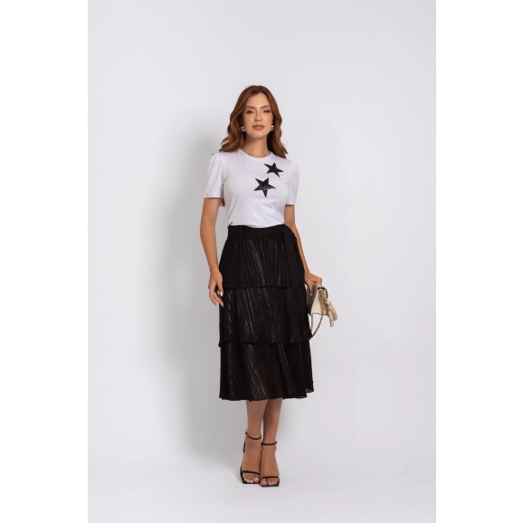 T-shirt de malha c/ aplicações estrela paetê (94% Viscose 06% Elastano)