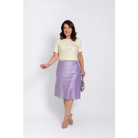 Saia Evasê Em Cetim Com Elastano Lilás Luciana Pais
