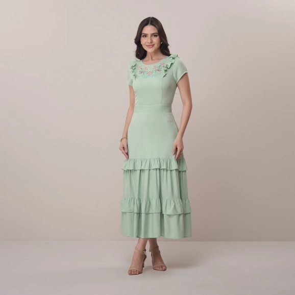 Vestido Amalia Em Viscose Rayon Com Bordado Verde Tata Martello