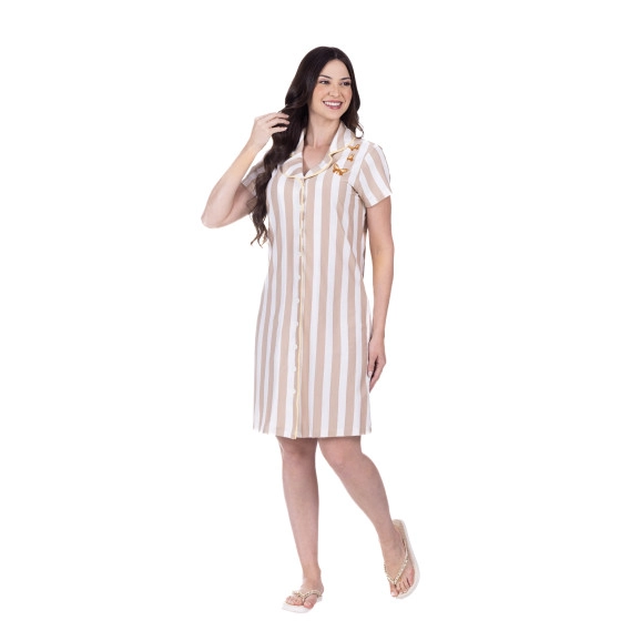 Vestido Anastácia Em Malha Listrada Bege Hapuk