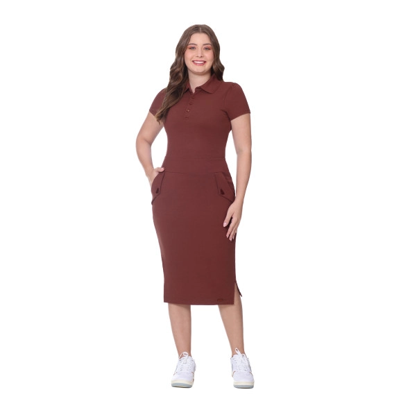 Vestido Andressa Marrom Piquet Gola Polo Hapuk Outono/Inverno 2025