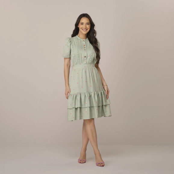 Vestido Angela Em Bordado Lolis Verde Tatá Martello