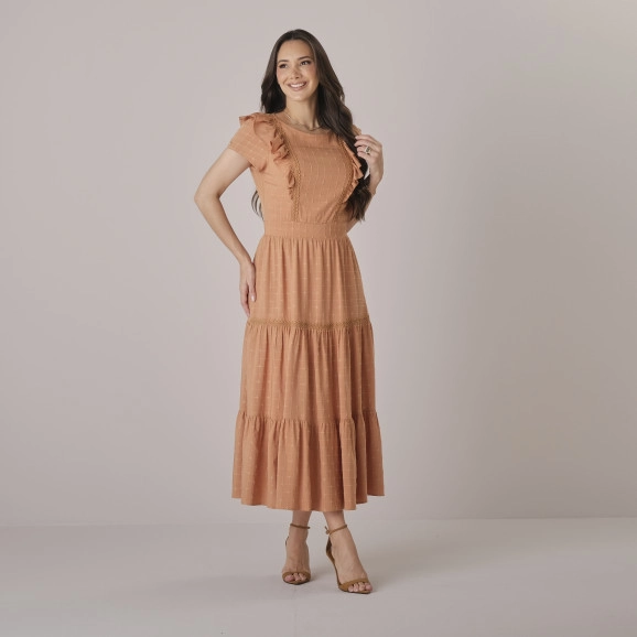 Vestido Angelica Em Visco Carmel Marrom Tata Martello