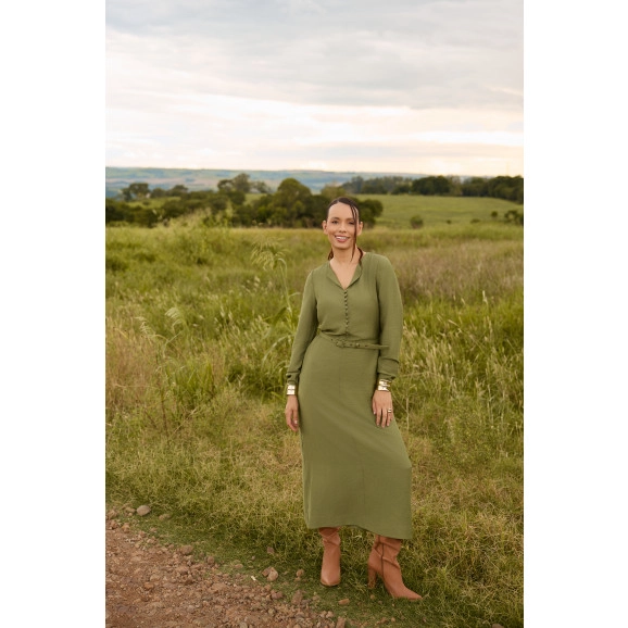 Vestido Angélica Em Visco Nylon Verde Jany Pim