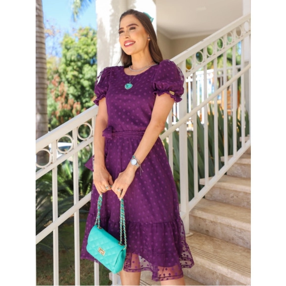 VESTIDO ANGELINA TULE UVA COM FAIXA.