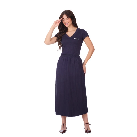 Vestido Antônia Em Malha Canelada Azul Marinho Hapuk
