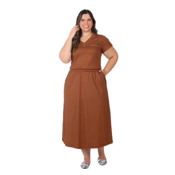 Vestido Antônia Em Malha Canelada Marrom Hapuk