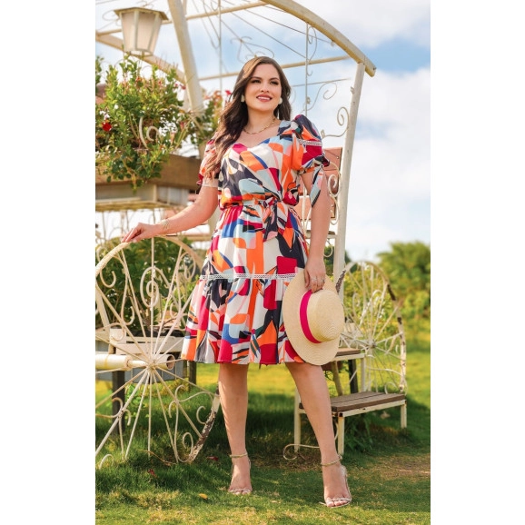 Vestido Areta Em Crepe Estampado Maria Amore