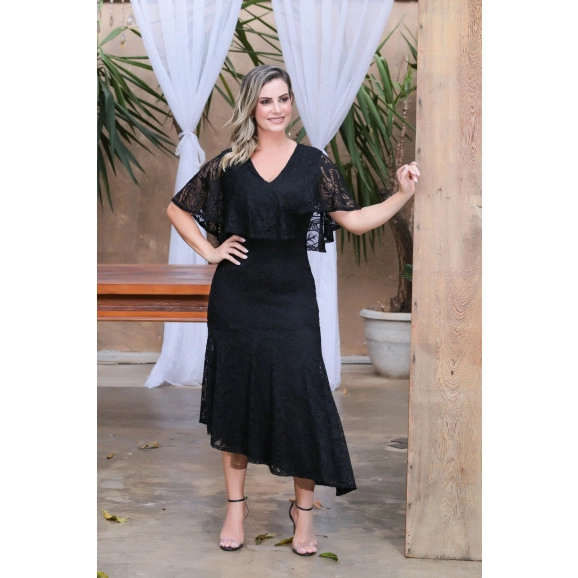 Detalhe: vestido confeccionado em renda, possui babado, modelagem assimétrica. Aquele clássico com um toque de modernidade, a renda cai bem em qualquer ocasião!