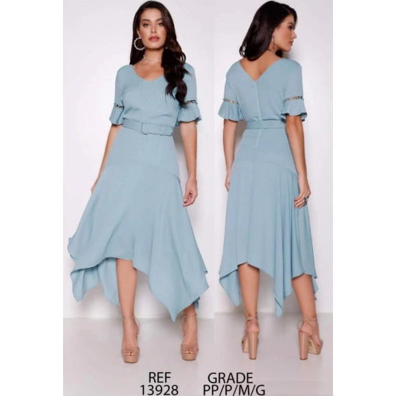 Detalhe: possui manga flare com detalhe em pedrarias, barrado assimétrico, fechamento em zíper atrás. Pra quem ama um look mais delicado e romântico não pode ficar sem esse dress!