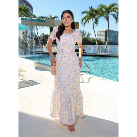 Vestido Aurora Em Crepe Estampado Maria Amore