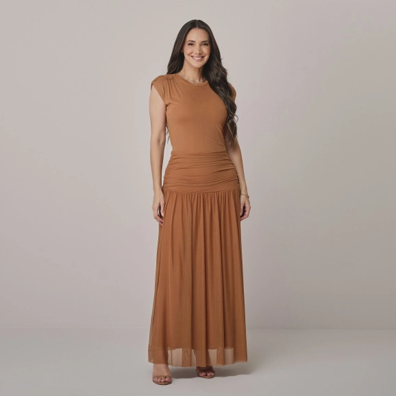 Vestido Aurora Em Tule Caramelo Tata Martello