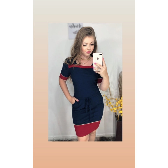 Vestido Canelado Azul com Elátisco na Cintura, possui bolsos na lateral, é tricolor. Composição: 96% Viscose, 4%Elastano. Vestido super confortável, ideal para usar com tênis ou rasteirinhas.