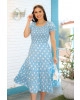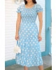 Vestido fluído, decote redondo com elástico, lastex no busto, manga princesa e saia três marias.