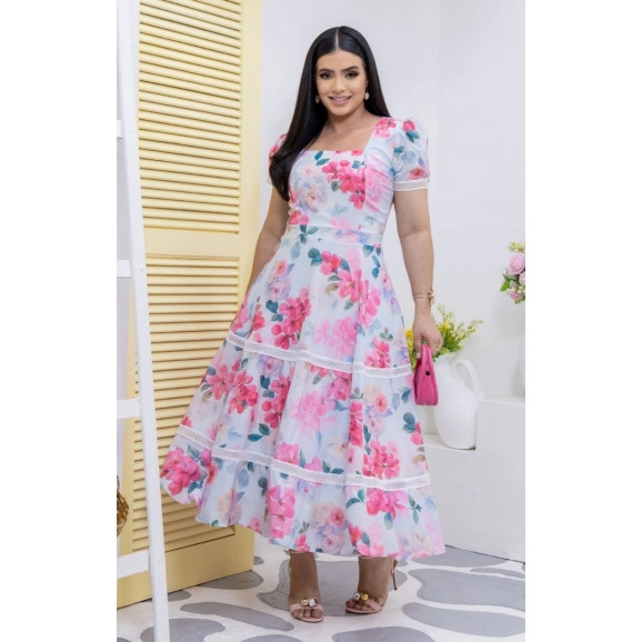 Vestido Bela Flor Em Sedinha Estampada Maria Amore