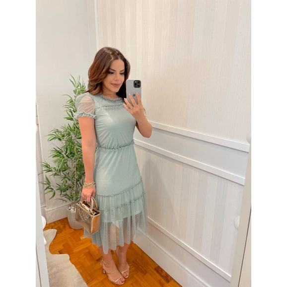Vestido fluído, manga princesa, detalhes em babadinhos, elástico na cintura e saia três marias.. TECIDO: Tule bordado (com elastano, com forro) OBS: A pré venda é uma forma de reservar um produto ou serviço antes que ele seja oficialmente lançado no mercado. Sendo assim o modelo leva alguns dias até a chegada em nossa loja. Após modelo chegar aqui na loja, será separado todos os pedidos de nossas clientes e realizado o enviado pra vocês. A partir da data de envio que é contato o prazo de entrega que aparece no ato da compra.