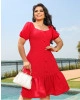 Vestido Bia Vermelho Com Babados E lastex Nas Costas Maria Amore