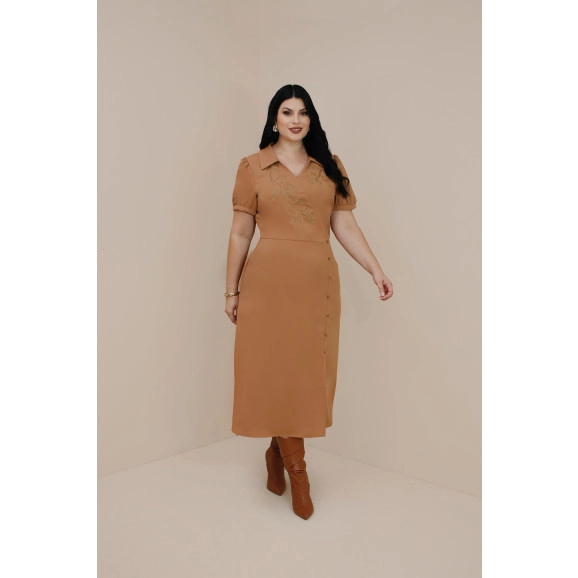 Vestido Bonina Em Midi De Alfaiataria Bege Plus Size Nitido