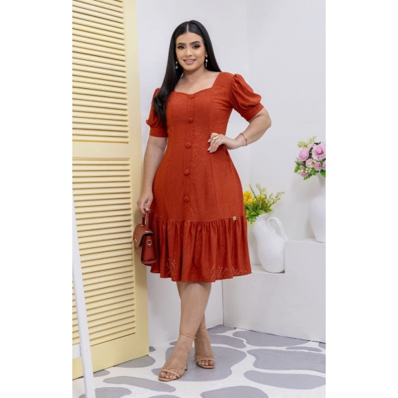 Vestido Camily Em Lese De Malha Terracota Maria Amore