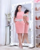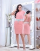 Vestido Canelado Rose com Detalhe Verde Maria Amore