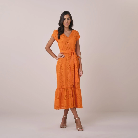 Vestido Carmem Em Laise Laranja Tatá Martello