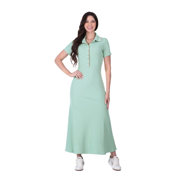 Vestido Carolina Em Malha Canelada Verde Hapuk
