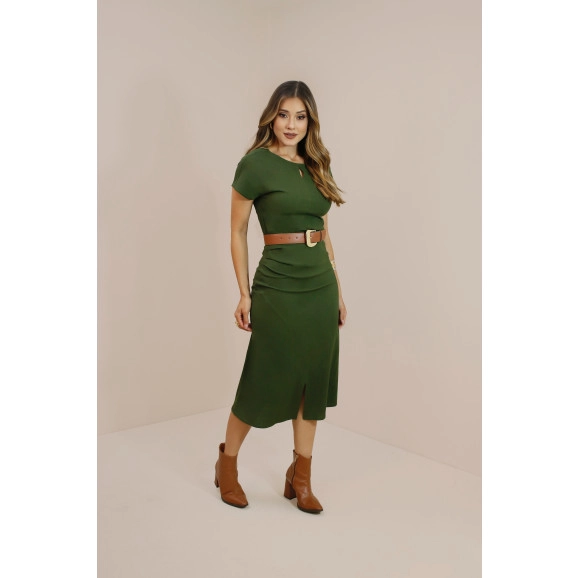 Vestido midi em viscose com elastano e