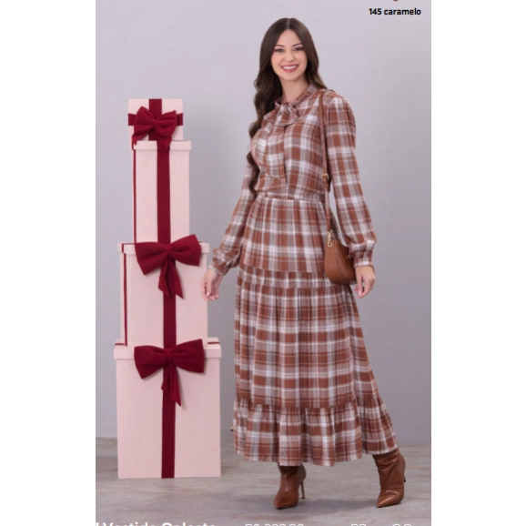 Vestido Celeste Em Tecido Plano Xadrez Caramelo Hapuk