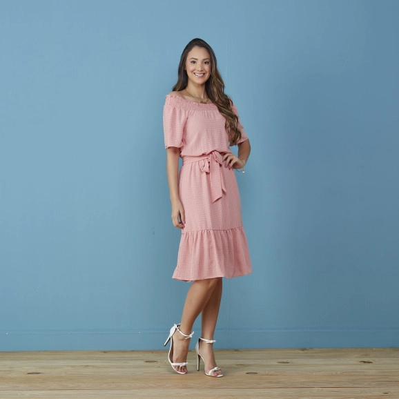 Vestido Ciganinha com Faixa Rosa Tatá Martello