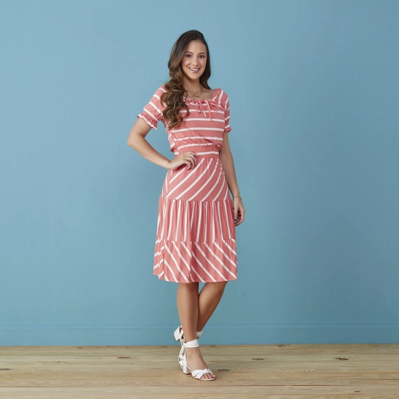 Vestido Ciganinha Listrado Salmão Tatá Martello