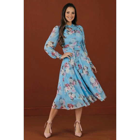 Vestido Clarice Estampado Azul Tata Martello. TECIDO: TULE ESTAMPA EXCLUSIVA TM