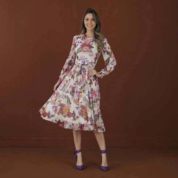Uma produção autêntica e elegante para você não passar despercebida de forma elegante em confraternizações, cultos e ocasiões especiais. Combine com scarpins e acessórios discretos e veja o quão mais bela o vestido o deixará.