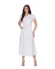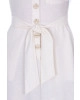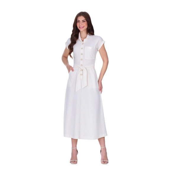 Vestido confeccionado em malha piquet, decote com gola, fechamento frontal por botões, manga sem cava com barra italiana, bolsos funcionais, acompanha faixa e possui forro.