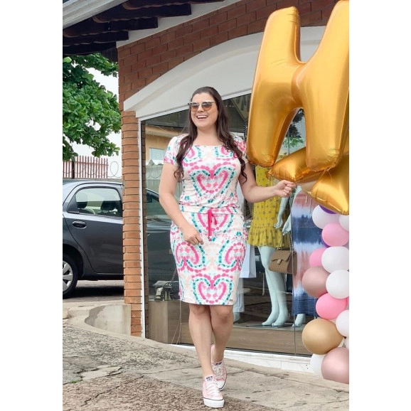 Detalhe: Vestido confeccionado em malha viscose, possui bolsos laterais, detalhe em cordão na cintura.