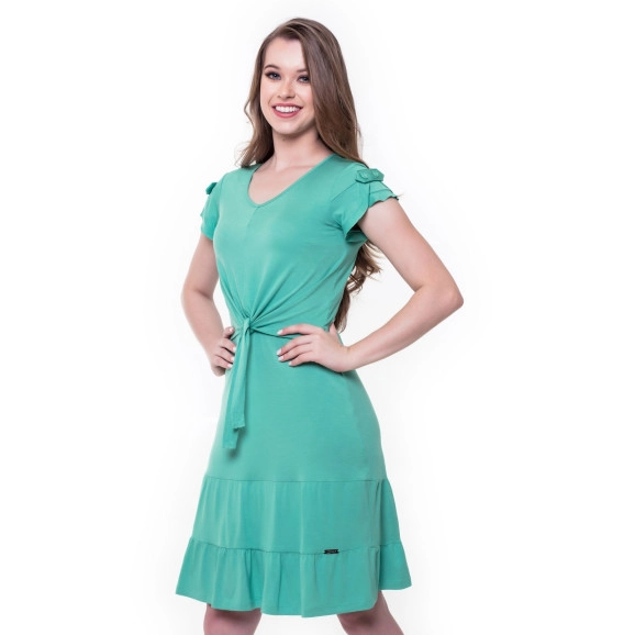 O Vestido com amarração verde hapuk foi confeccionado em malha, possui detalhe nas mangas, amarração na cintura.Composição do tecido 96%viscose 4%elastano forro 100%poliester. Look fresquinho, bem carinha da estação!