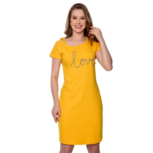 Vestido total conforto, malha de algodão com bordado industrial frontal "Love".Composição: 98% algodão- 4%. Vestido super confortável, ideal para um passeio em família!