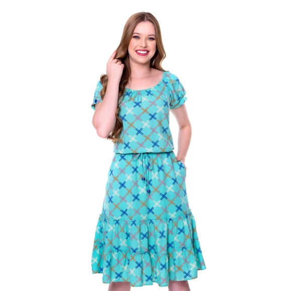 Vestido com Elástico na Cintura Verde Água Hapuk (Pré Venda)