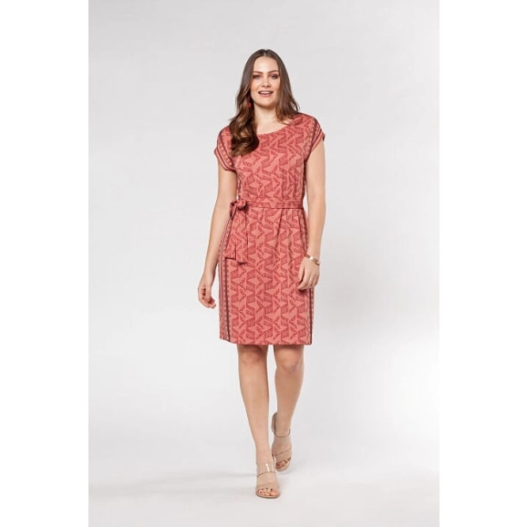 Vestido com Faixa Rosa Queimado confeccionado em crepe, possui uma estampa linda, com um ótimo caimento, acompanha faixa para modelar o vestido.