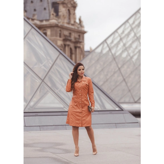 O vestido Couro com Botões Joyaly foi confeccionado em couro ecológico, possui manga longa fechamento em botões frontais. Composição do tecido 100%viscose. Look elegante e sofisticado, para você você arrasar em qualquer evento que você for!