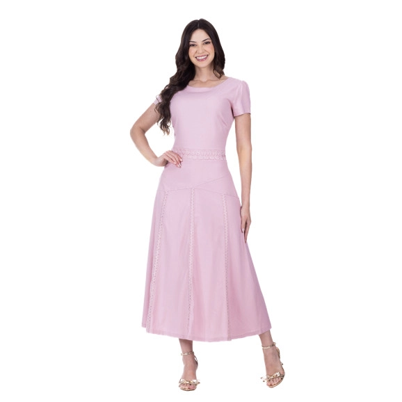 Vestido Cristina Em Tecido Plano De Linho E Viscose Rosa Hapuk
