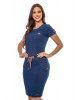 Vestido de Malha Denim com Detalhe em Courinho Hapuk