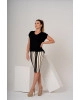 Vestido de malha viscolycra, possui a saia listrada, e a blusa soltinha, dando a impressão de um conjunto. Modelo elegante, fica lindo com saltos!
